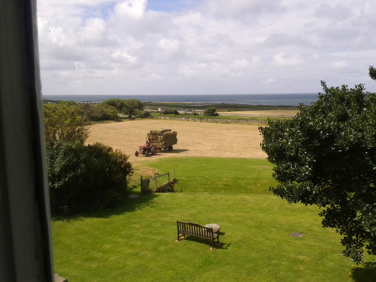 To the rescue came Ed, Rob and most of Rob's family. Earlier this week they cut the grass, and yesterday they turned the grass, turned it again and again until they baled it up and took it away this morning. A good job done!